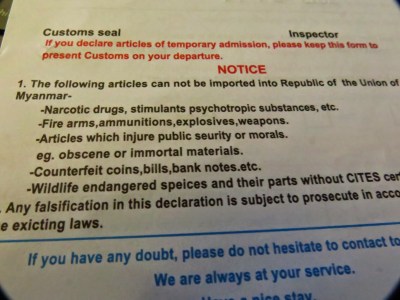 Interdit d’importer au Myanmar des choses immortelles. Ils m’ont laissé entrer pareil !