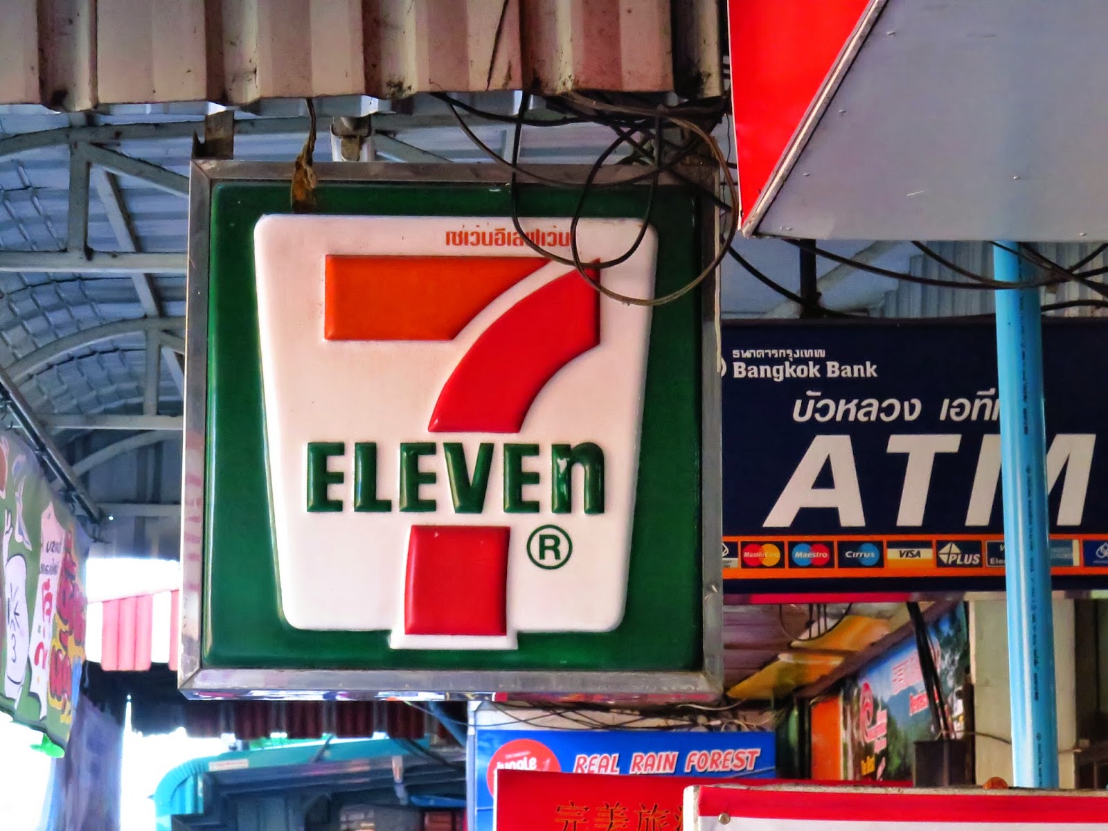 Voulant aussi ajouter du piquant à cette rocambolesque aventure, je me suis débarrassé de mon savon avant de partir de Chiang Mai. En Thaïlande, le meilleur ami du backpacker est le 7-Eleven. Y’en a partout et on y trouve tous les articles essentiels à la survie, incluant évidemment de la Chang, de l’eau embouteillée et du savon.