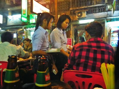 Fidèle a mon engagement personnel (et comme, même au Myanmar, il y a des fried noodles thaï style (pad thaï)), voilà 24 jours que je n’ai pas consommé ce réconfortant plat pour tout amateur de chez Thaï Express. Au Myanmar, comment je me débrouille ? Mesdames et messieurs, ladies and gentlemen, j’ai la fierté de vous presenter ce qui sera dans 10 ans la Mecque birmane du backpacker : 19th street, Chinatown, Yangon.