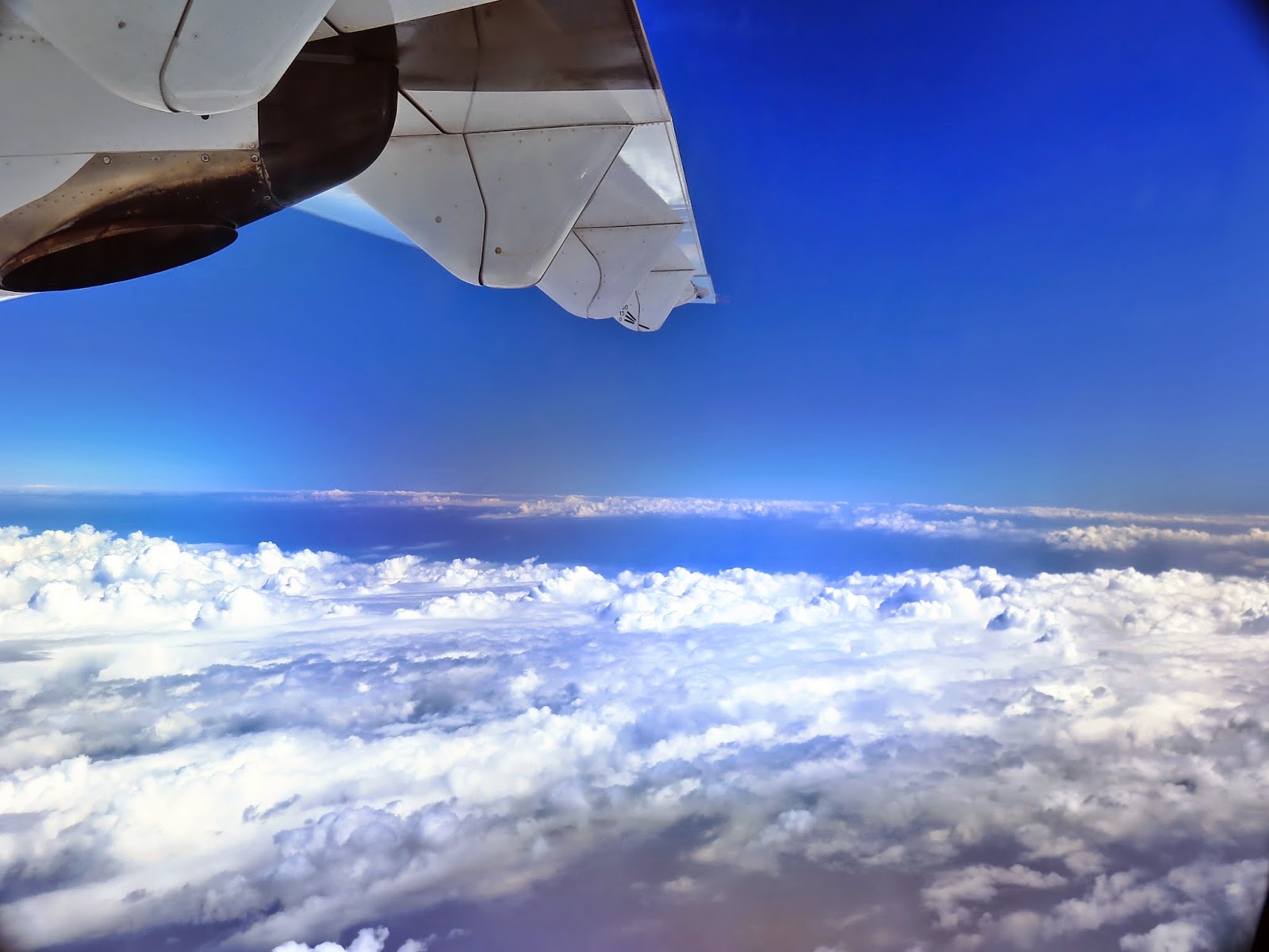 Ma voisine tient son siège avec tous ses ongles déployés : elle a arrêté de parler. Moi, beau cave, je prends mon Kodak et je me mets à prendre des photos du ciel. Parce que même si ça brasse, le ciel, ben il est beau. Je ris. Et je ris fort. Le vieux bonhomme de 75 ans assis derrière moi se met à rire aussi. Le mouvement de masse prend forme. On entend des « This is an extra we have not even had to pay for !« . Pis évidemment, on atterris. J’tencore en vie. Pis ma voisine aussi !