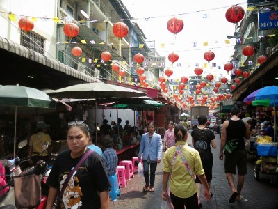 Évidemment, tout ça c’est n’importe quoi ! Pas vrai que j’allais être dans Bangkok, et regarder le temps passer, ne serait-ce qu’une seconde. Y’a une couple de places que je voulais revoir avant de partir, pis ça adonnait ben parce qu’elles étaient dans l’horaire que Kham nous avait préparé. Ceux qui suivent Vinyle Mobile depuis le début savent à quel point j’avais été impressionné par le Chinatown, à mon arrivée. Ça l’air niaiseux, mais tout seul pour la première fois en Asie, ça brasse en Saint-Pantalon. Pis quand je suis retourné, j’ai trouvé ça… normal. C’est achalandé pas à peu près, mais c’est pas aussi étouffant que dans mon souvenir.